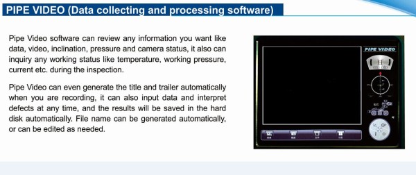 يمكن أن يساعدك برنامج Pipe Video الموجود داخل النظام في مراجعة المعلومات التي تريدها, suzh كبيانات, فيديو, الميل, pressure and camera status.The automatic cable drum is with 200m standard cable, و300م اختياري. طبل الكابل اليدوي اختياري.