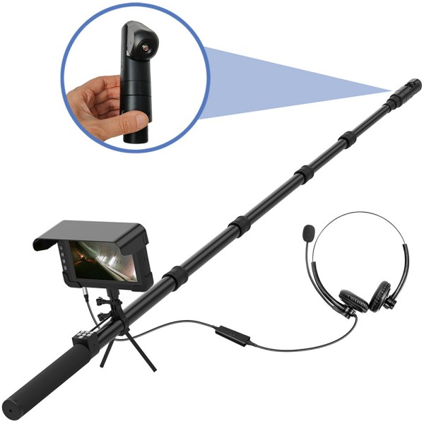 - ال 360 Rotation Telescopic Pole Search Camerais ideal to view unreachable impossible-to-see total-dark and large viewing areas, تم تصميمه لاستخدامه في البحث عن الحياة & التفتيش الإنقاذ, فحص المنزل, مسح الحياة البرية, فحص البناء, تحت الكشف عن المركبات وهلم جرا.