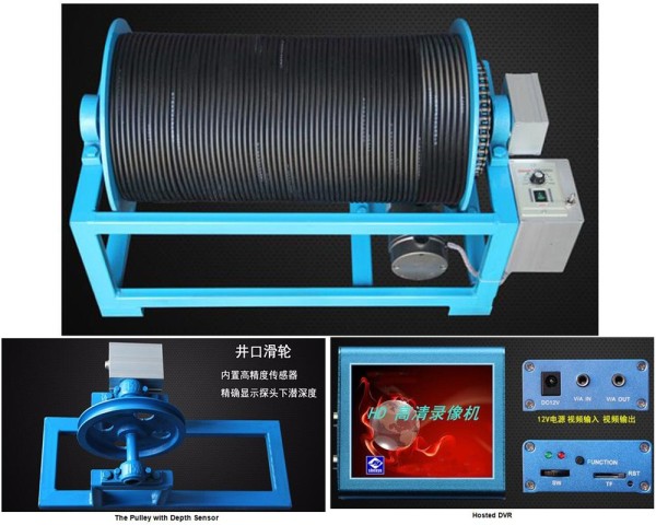 The system works with cables of different lengths (από 100μ έως 2000μ) that can be securely coiled on an electric operated winch. Το μηχανοκίνητο βαρούλκο επιτρέπει την περιέλιξη του καλωδίου πάνω-κάτω με διαφορετικές ταχύτητες(όταν τροφοδοτείται 220V). Εκτός από τα ευρήματα της επιθεώρησης, Οι χρήστες μπορούν να δουν βάθος, the depth accuracy reach to 0.05.