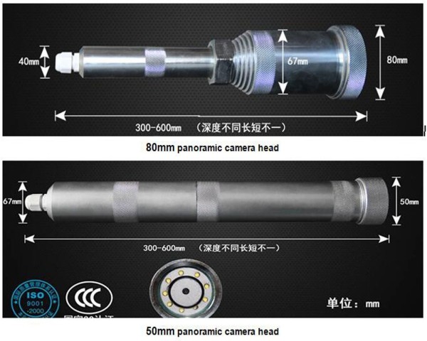 Αυτή η κάμερα Water Well Downhole/Berehole Camera είναι ένας εξαιρετικός συνδυασμός σύγχρονης τεχνολογίας και προσιτής τιμής. Είναι πολύ κατάλληλο για την επιθεώρηση διαφόρων δεξαμενών, πηγάδια, οπή γεωτρήσεων, άξονα, σωλήνες, δεξαμενές και άλλα αντικείμενα από την κορυφή προς τα κάτω. It is equipped with one Ø80mm panoramic camera head and one Ø50mm panoramic camera head. The Ø80mm panoramic camera and the Ø 50mm panoramic camera head both all equipped with CCD sensors and 9pcs high-output long-lasting LED light allowing for capturing bright and detailed images even in poor lighting environments. Το περίβλημα της κεφαλής της κάμερας κάτω από την οπή είναι αδιάβροχο IP68 και αντέχει την πίεση μέχρι 300 μπάρα στο νερό.