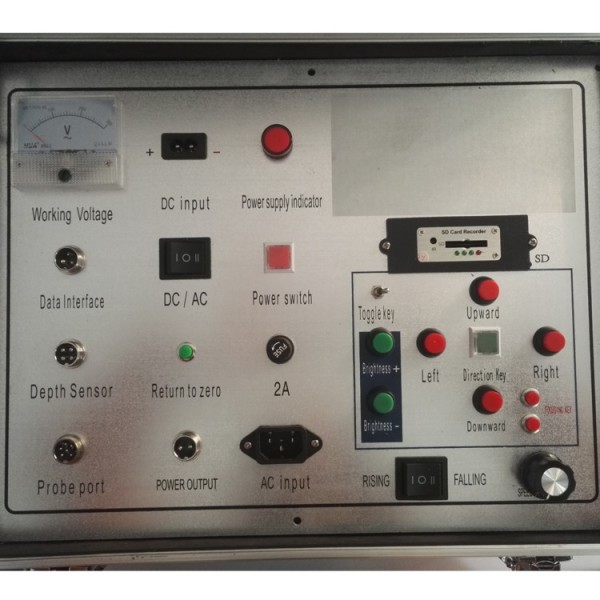 A Downhole Camera kompakt vezérlőegységgel rendelkezik, nagy felbontású, 12 hüvelykes LCD kijelzővel. Az ellenőrzés folyamata közvetlenül a helyszínen, videofájlként megtekinthető a kijelzőn. Minden adat menthető a 16G SD kártyán(Legfeljebb 32 g). A felhasználóbarát felület különféle műveleti funkciókat kínál, mint például, A mélységérzékelő, a csörlő működtető gombját, forgásszabályozás és így tovább.