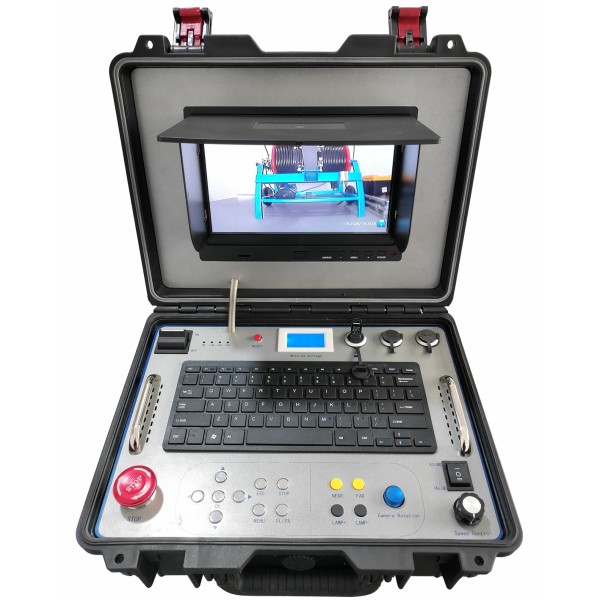 La Downhole Camera è dotata di un'unità di controllo compatta con display LED da 10" ad alta risoluzione. Il processo di ispezione può essere visualizzato sul display direttamente sul sito, catturati come file video. Tutti i dati possono essere salvati su scheda SD 16G(Massimo 512G). L'interfaccia intuitiva offre varie funzionalità operative, ad esempio, il sensore di profondità, la manopola di azionamento del verricello e così via.