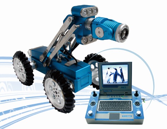 Robot do inspekcji rur składa się z kilku modułów, które są łatwe w transporcie i montażu: kamera z możliwością obrotu, pochylenia i zoomu, kabel wprowadzający, Kontrolery, szpula kablowa i gąsienica. Opcjonalne akcesoria są dostępne na zamówienie. Kamera obrotowo-uchylno-zoomowa z możliwością ciągłego obrotu jest wyposażona w: 0.01 wrażliwe na luksy, kamera CCD o wysokiej rozdzielczości z powłoką przeciwmgielną i skala laserowa, zapewnia wysokiej jakości, zaokrąglony obraz wnętrza rurociągu. Kamera posiada obrót o 360 stopni, nachylenie 180 Rotacja stopnia, 120 razy powiększyć, automatyczne ustawianie ostrości, wbudowane światło LED, czujnik ciśnienia i skala laserowa do pomiaru szerokości pęknięć.