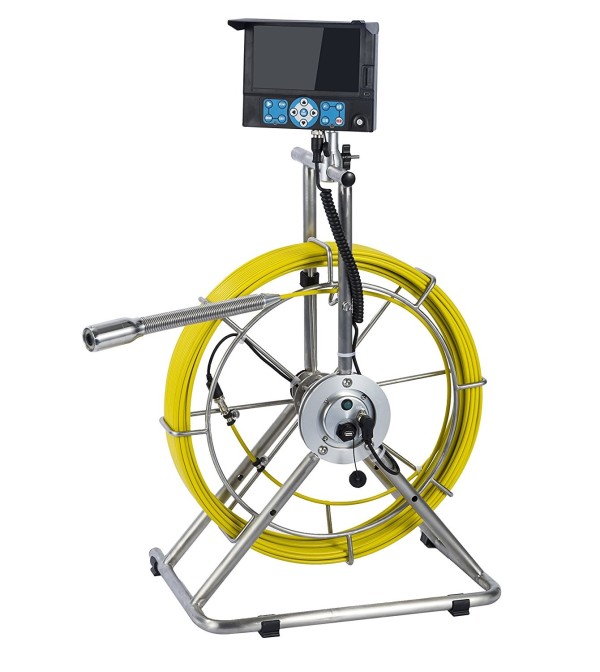 Cable Reel | Wire material: fiberglass rod Fiberglass length:50m(standard), 40m to 60m optional Fiberglass diameter: ø6.8mm Fiberglass color: yellow Cable wheel material: Stainless steel Distance counter: meter/foot optional, accurate to 0.1m or 0.3ft, it shows the cable length which you push into pipe on the screen |