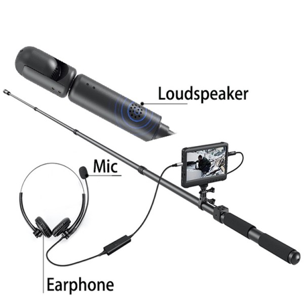 Teleskopstången är med 4 leder, den kan sträckas för avståndsinspektion för hand, den totala teleskopstångens längd är 3,5 meter(11.5ft).