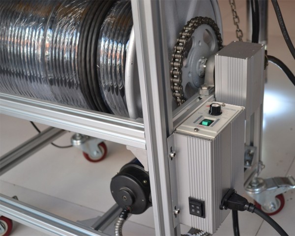 系统使用不同长度的专用电缆 (从100m到1500m) that can be securely coiled on an electric operated winch. 电动绞车允许以不同的速度将电缆上下缠绕(220V power supply). 除了检查发现, 用户可以查看深度, 深度精度达到0.01m,支持深度重置.