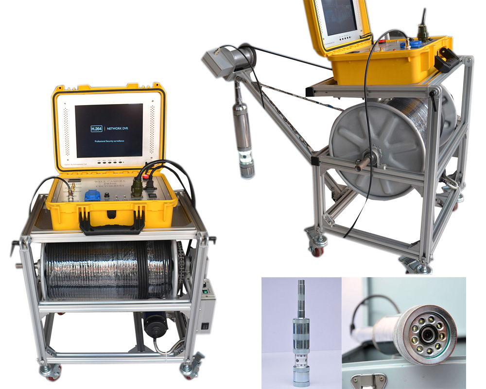 Dual Down-hole Survey Borehole Camera Downhole Waterwell Inspection Camera System with 100m to 1500m Cable, 12inch Screen FLX-PD1500REC
